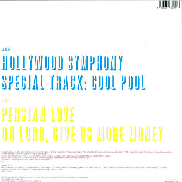 First issued as "[r=1910593" in 1979. Reissue with alternative running order and new cover artwork. Durations do not appear on release. Holger Czukay's life is like a never ending movie. He is living and working in an old cinema nearby Cologne. Where he started his carrier with the group Can, born in 1938. He also shared with this cinema the groundbreaking idea. When the Second World War began all engines had to stop. From his first money Holger bought two tickets for the movie "Laterna Magica" which was a key point and lad into further creation of his own videos. Movie is his homage to music and film, even though Holger already created music for films during his time with Can. These tracks were important for his further career as a composer. Copyright by Holger Czukay ℗ & © 2016 Grönland Records