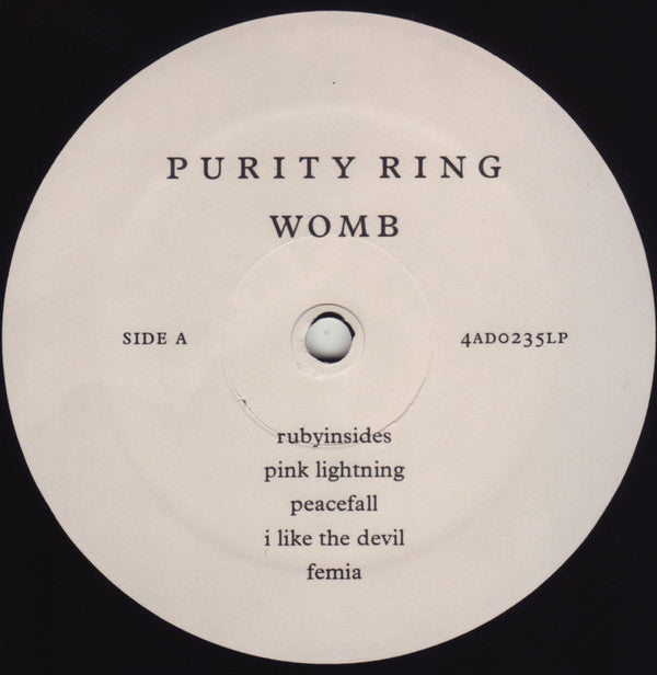 No text on front cover, "PURITY RING WOMB" just on clear hype sticker on outer wrap