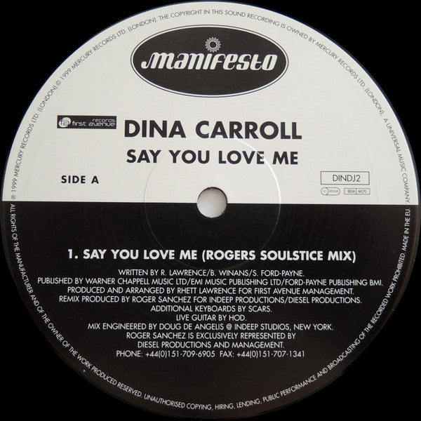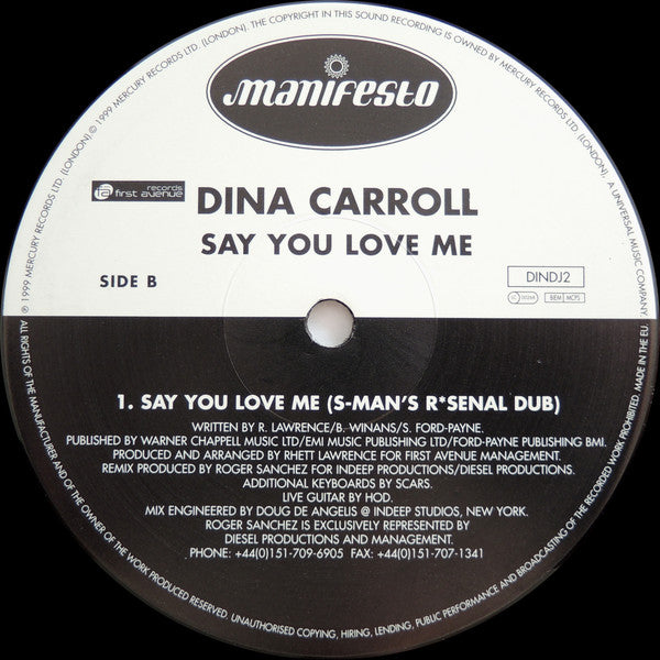 Dina Carroll - Say You Love Me (12", Promo) (Very Good (VG)) (1142)