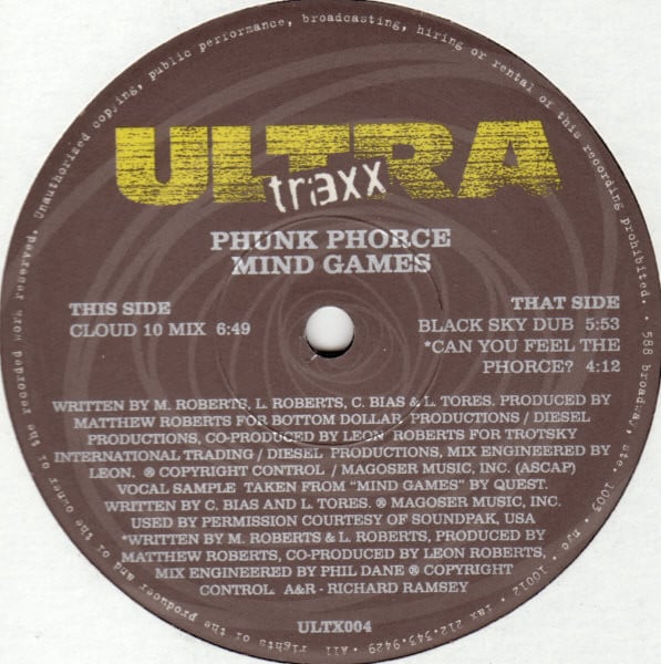 Produced for Bottom Dollar Productions/Diesel Productions. Co-produced for Trotsky International Trading/Diesel Productions. Tracks A & B1 mixed @ Copyright Control/Magoser Music, Inc. (ASCAP). Vocal sample for Mind Games was taken from Quest (9) - Mind Games. Used by permission courtesy of Soundpak, USA. Track B2 mixed @ Copyright Control.