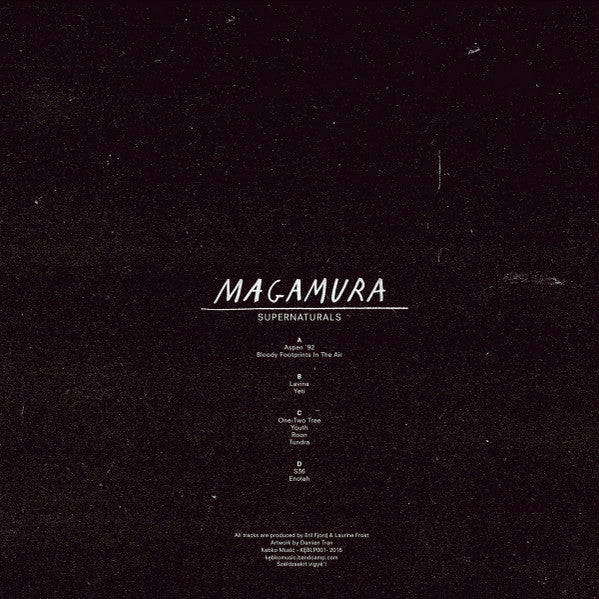 Japan-based Kebko Music's first instalment on vinyl and tape by Hungarian experimental music duo, Magamura - powered by Eril Fjord and Laurine Frost. LP comes in a gatefold sleeve. BASF chrome cassette tape with individually hand-printed silk screen cardboard cases.