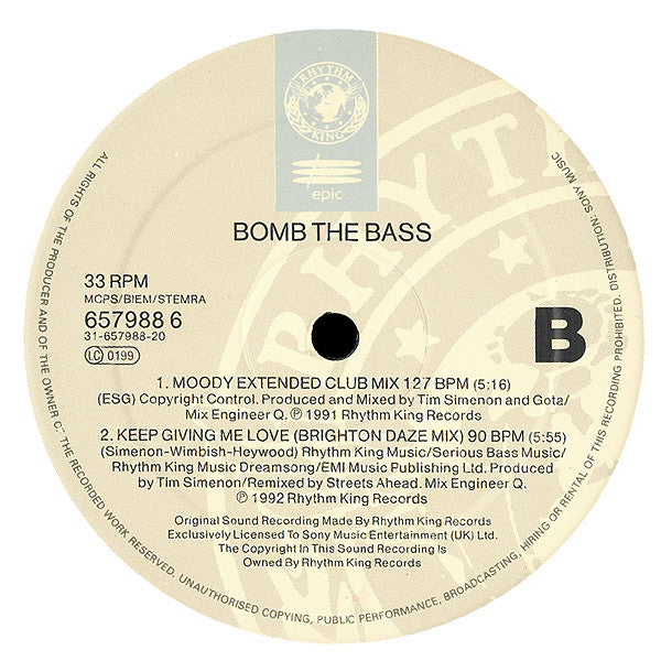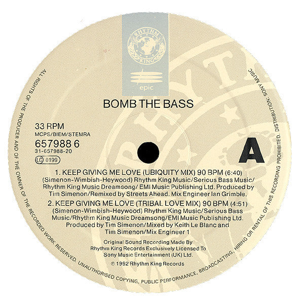 All tracks mixed at Matrix / Vocals recorded at Eastcote Rhythm King Music / Serious Bass Music / Rhythm King Music Dreamsong / EMI Music Publishing Ltd. A1, A2 & B2: 90 BPM & B1: 127 BPM ℗ 1992 Rhythm King Records © 1992 Rhythm King