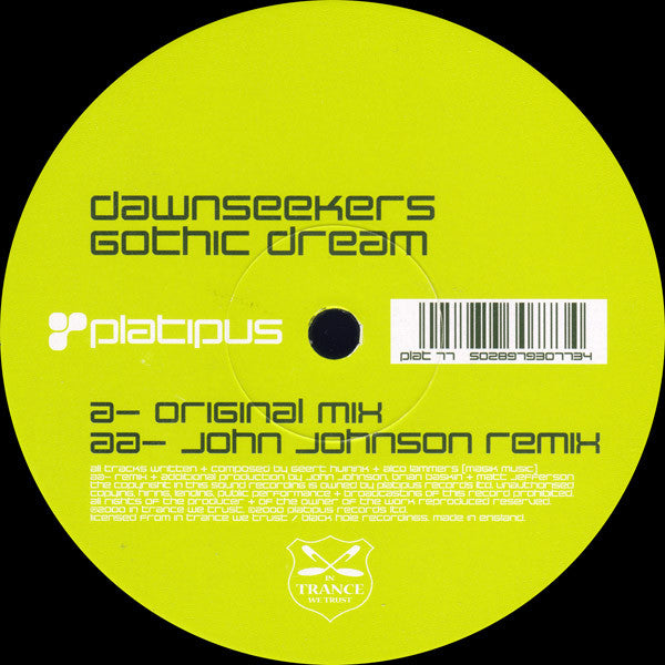 The copyright in this sound recording is owned by Platipus Records Ltd. Licensed from In Trance We Trust/Black Hole Recordings. Made in England.