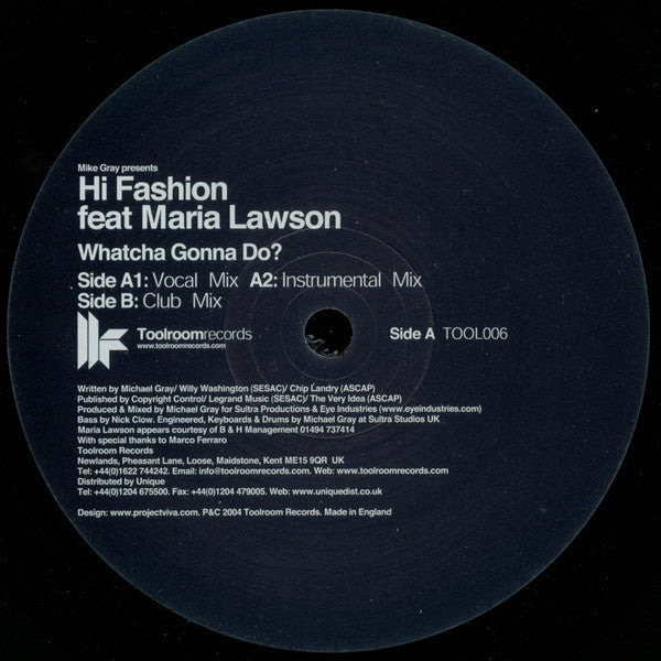 Side A 33 ⅓ RPM, Side AA 45 RPM Published by Copyright Control / Legrand Music (SESAC)/The Very Idea (ASCAP) Produced & mixed for Sultra Productions & Eye Industries Engineered at Sultra Studios Maria Lawson appears courtesy of B & H Management Distributed by Unique Design: www.projectviva.com P&C 2004 Toolroom Records, Made In England