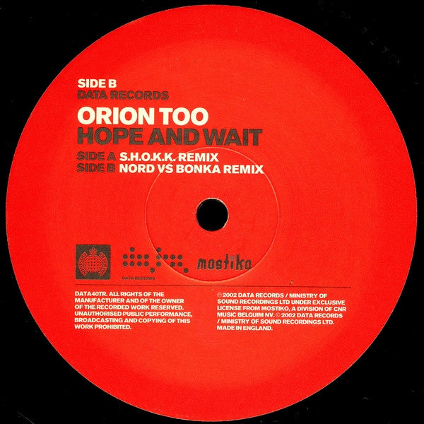 ℗ 2002 Data Records / Ministry Of Sound Recordings Ltd under exclusive license from Mostiko, a division of CNR Music Belgium NV. © 2002 Data Records / Ministry Of Sound Recordings Ltd. Made in England.