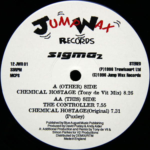 (P) 1996 Trawlcourt Ltd (C) 1996 Jumpwax Records Produced by David Puxley + Andy Adler (note: Adler is spelt incorrectly on the label, it should be Allder) A: Additional production & remix by Tony De Vit and Simon Parkes for V2 Productions. Distributed by DEMIX/RTM