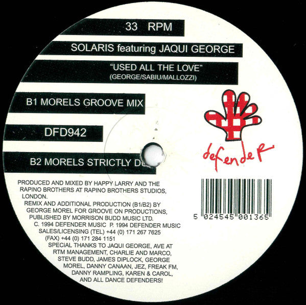 Solaris (20) Featuring Jaqui George* : Used All The Love (12")