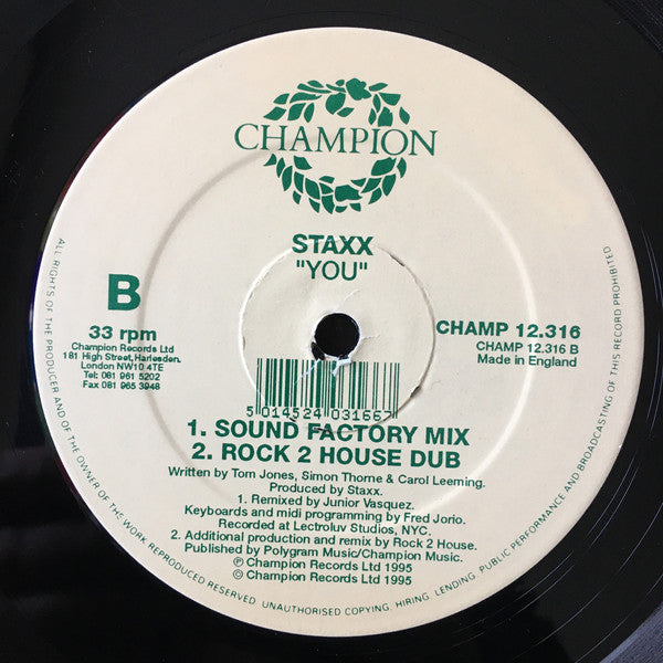 Staxx - You (12") (Very Good Plus (VG+)) (1196)