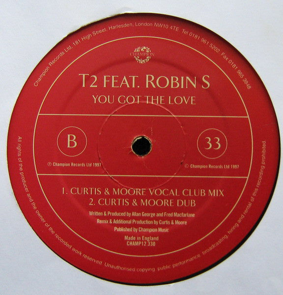 T2 (2) Feat. Robin S* : You Got The Love (12")