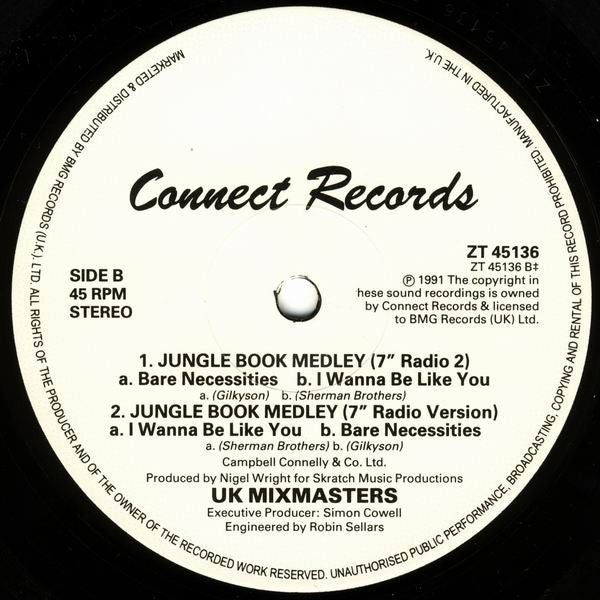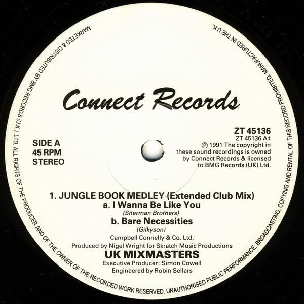 Track titles on label: 'Jungle Book Medley'. Also released with 'Bare Necessities Megamix' on label. Cover medley with two songs taken from the Walt Disney movie "Jungle Book". A on label: Jungle Book Medley (Extended Club Mix) A on sleeve: Bare Necessities Megamix B1 on label: Jungle Book Medley (7" Radio 2) B1 on sleeve: Bare Necessities Megamix (Radio 2) B2 on label: Jungle Book Medley (7" Radio Version) B2 on sleeve: Bare Necessities Megamix (7" Radio Version) Credit for 'I Wanna Be Like You' on label: Sherman Brothers Credit for 'I Wanna Be Like You' on sleeve: Sherman/Sherman