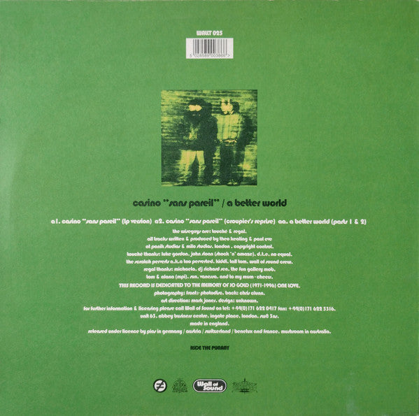 Produced at Panik Studios & Milo Studios, London. This record is dedicated to Jo Gold (1971-1996) one love.